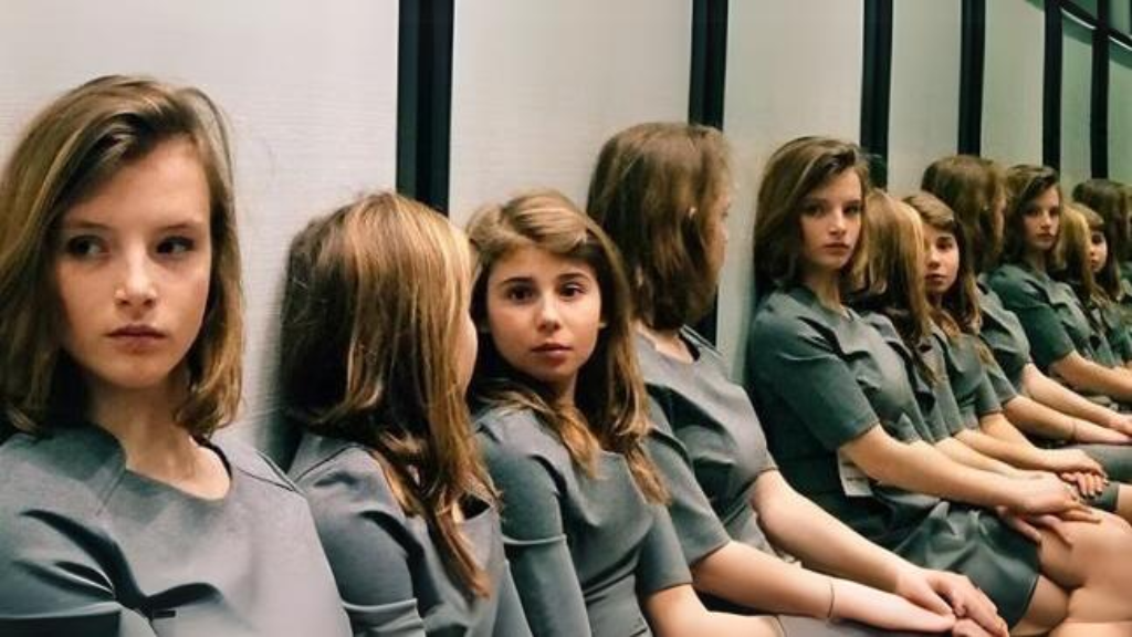 Aluksi se saattaa näyttää selkeältä. Näet rivin tyttöjä, jotka istuvat siististi vierekkäin. Mutta sitten alkaa mysteeri. Ovatko he kaikki ainutlaatuisia henkilöitä, vai katsotko älykästä optista harhaa peilien avulla? Ihmiset näkevät nimittäin kuvassa erilaisia määriä tyttöjä. Jotkut sanovat, että siinä on kaksi tyttöä, toiset laskevat kolme, ja jopa jotkut väittävät näkevänsä neljä tai enemmän tyttöjä!